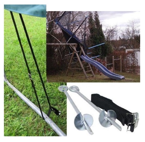 Forankringssett for trampoline.