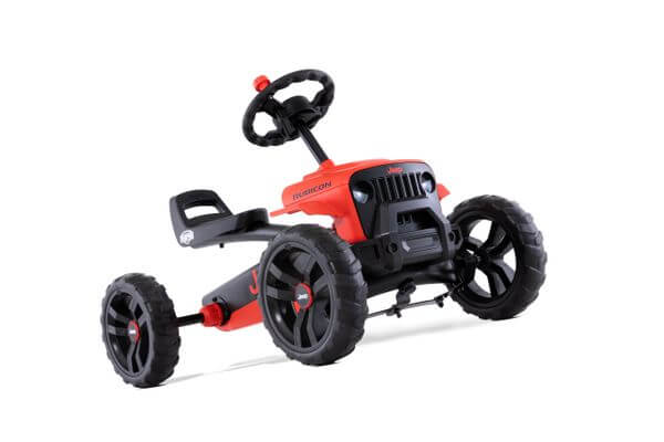 La barnet drømme, kjøre og utforske i en virkelig Jeep! Jeep Buzzy Rubicon er en ekte sensasjon i terrenget. Terrengdekk, ratt med rattkule og et kult panser med grill og strenge øyne gjøre dette til en ekte Jeep Rubicon.