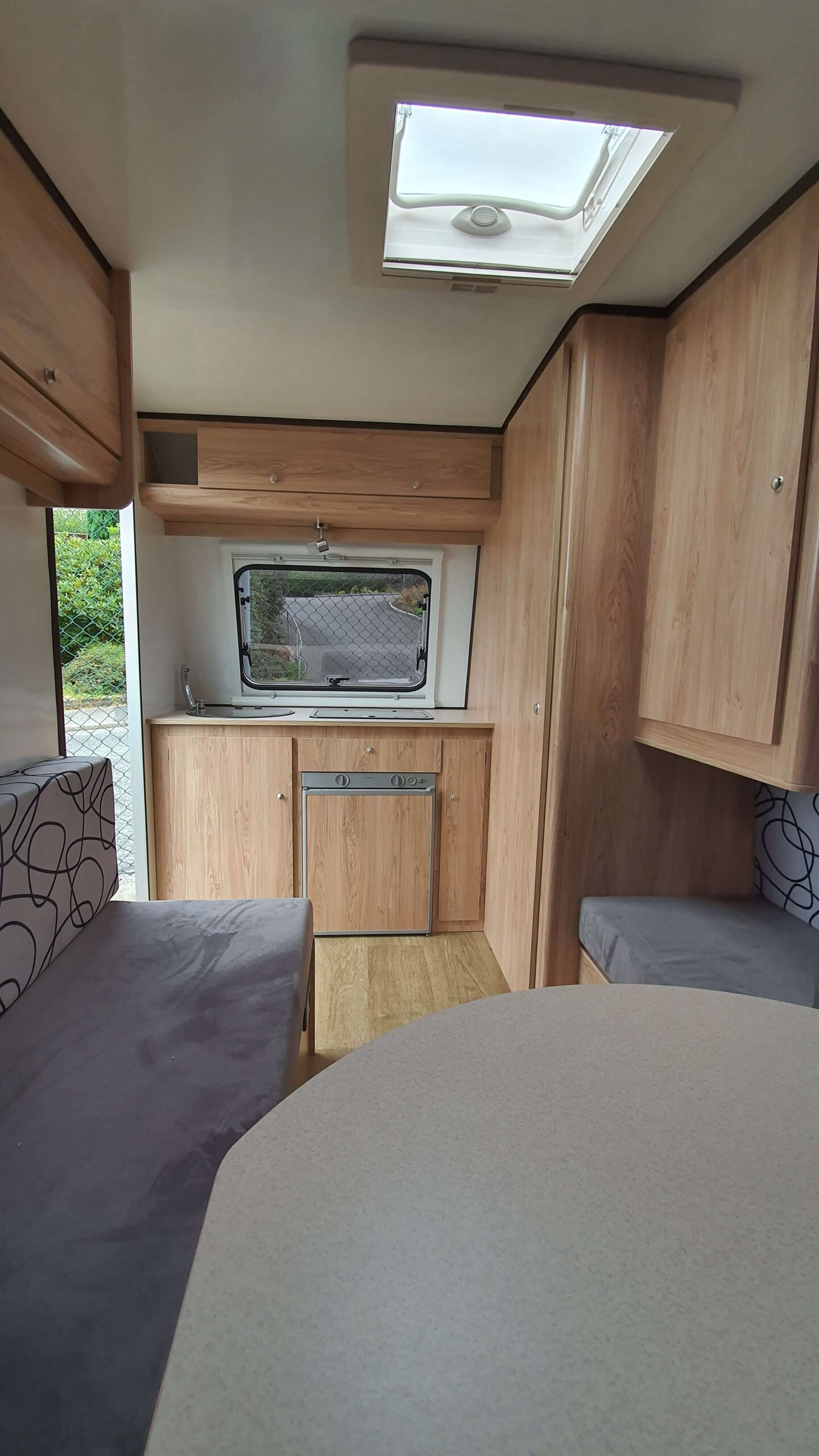 Fantastisk reisevogn med tilnærmet fuktgaranti ut evigheten. Bygget i sandwich med plastomslag. Praktisk innredet – tidligere markedsført som Poletta.