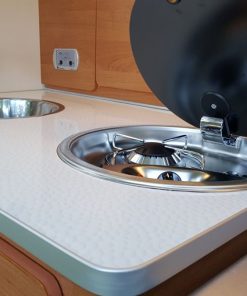 - Gasskomfyr med ett gassbluss og herdet glass-lokk
