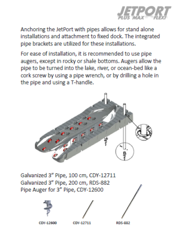 Forankring av JetPort med rør gjør det mulig å feste frittstående installasjoner og feste til den faste broen. De integrerte rørdelene brukes til disse installasjonene.