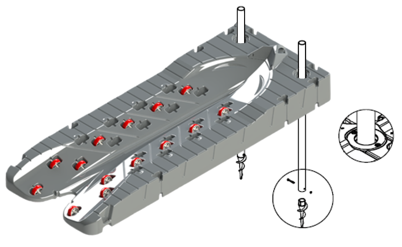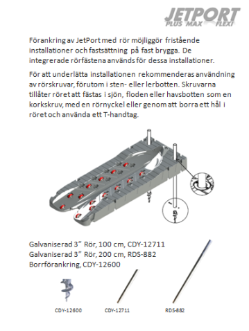 For å lette installasjonen anbefales det å bruke rørskruer, unntatt i steinete eller skiferbunn. Skruer gjør at røret kan svinge inn i innsjøen, elven eller havbunnen som en korketrekker med en rørnøkkel eller ved å bore et hull i røret og bruke et T-håndtak.