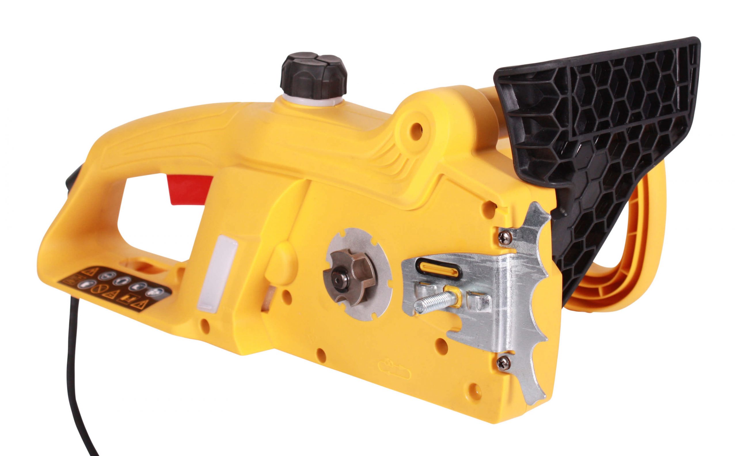 Elektrisk motorsag. 2000 W. Kjedesagen har automatisk kjedesmøring og håndbeskyttelse. Lett og ergonomisk design.